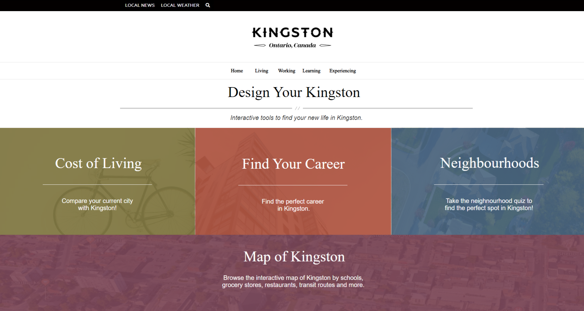 I worked within a group on two main sections of Kingston’s new web tools, which will be implemented in their new Live Work tourism website. The new Kingston Live Work site will act as Kingston’s hub for people looking to visit and live in Kingston. My team focused on the information architecture (IA) of the website and the UX of the cost-of-living tool. We did this by conducting a literature review, competitive scan, usability tests, and developed a prototype for final recommendations. The original website scored an NPS rating of 7.69, where my prototype scored 83.33.