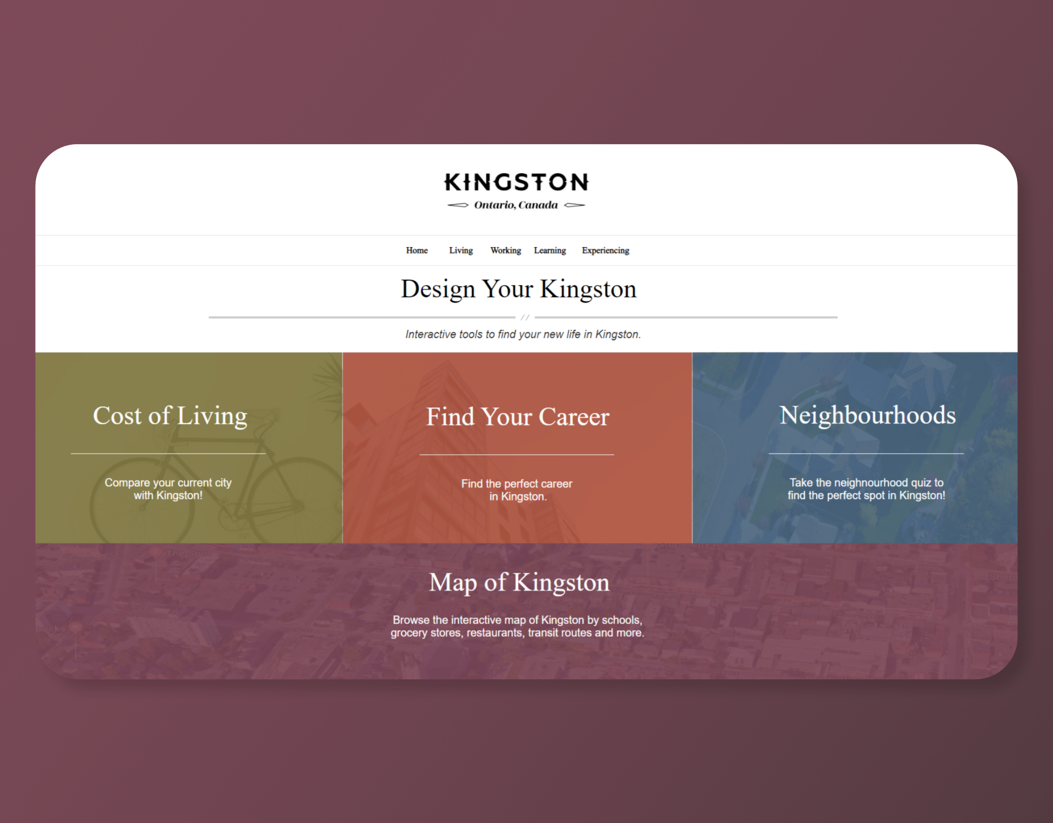 UX and methodologies for a Kingston tourism hub website.